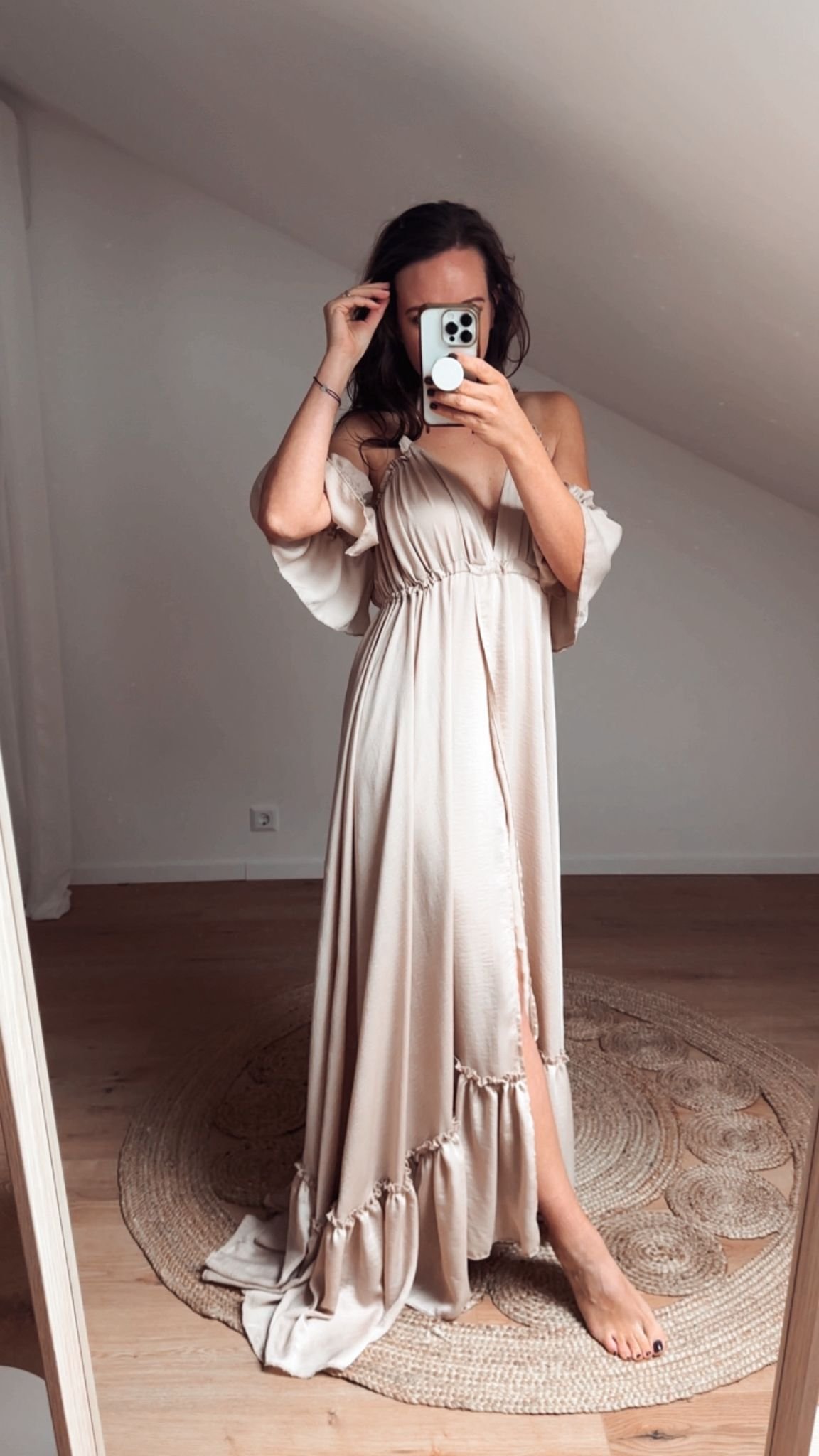 Dieses Kleid ist aus einem super leichten Chiffon Satin mit zarter crinkle Optik angefertigt.