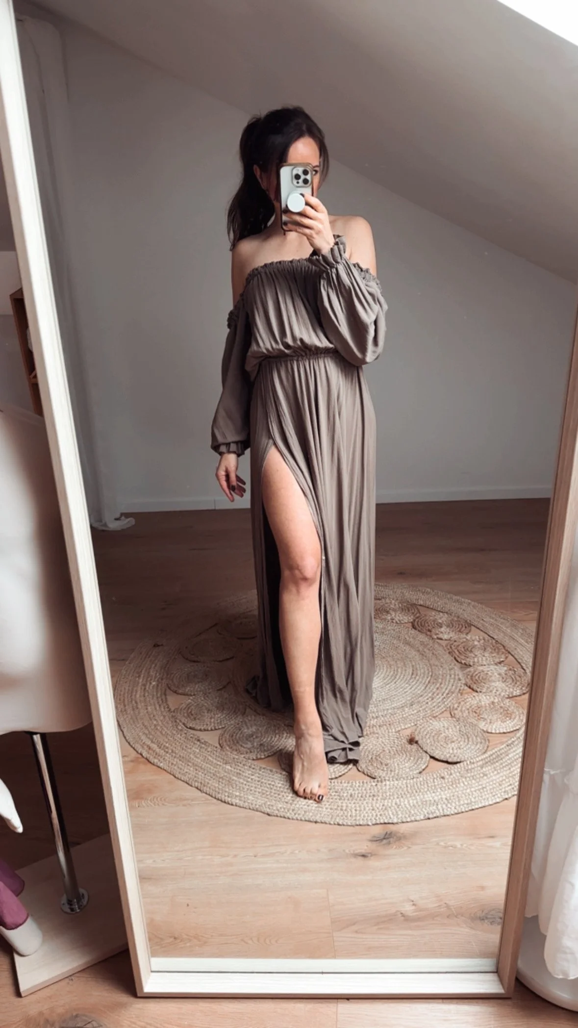 Das erste Kleid aus meiner Herbst-Winter Kollektion ist aus crinkle Leinen und wie immer durch einen Tunnelzug flexibel an Deine Figur anpassbar. Dieser Leinenstoff ist besonders leicht und weich auf der Haut. Es hat lange Ärmel, die man auf der Schulter tragen oder runterhängen lassen kann. Mit einem höheren Schlitz im Rockbereich hat mein eine optimale Beinfreiheit für natürliche Bewegungen.