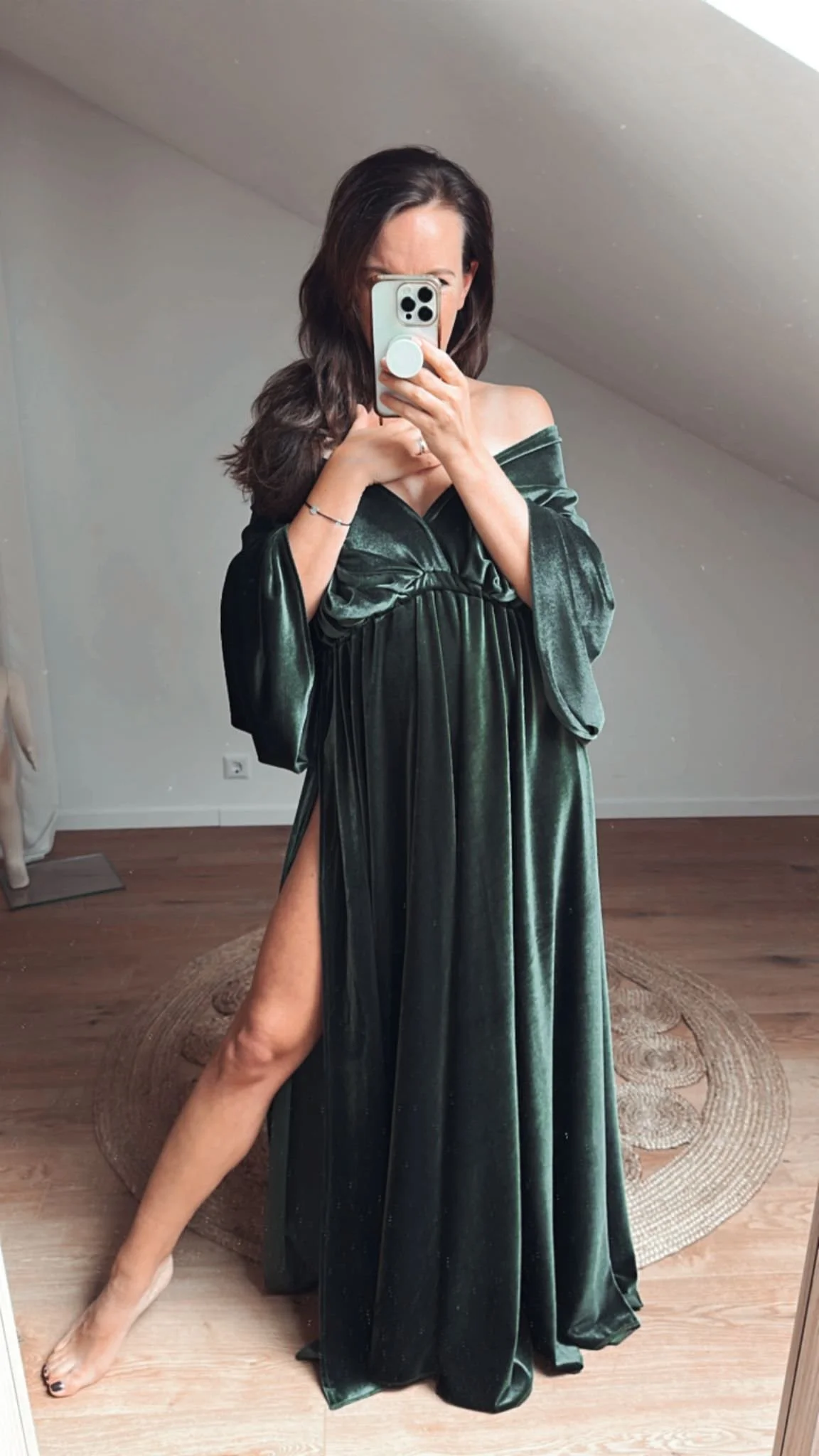 Samt ist sehr weich und angenehm auf der Haut zu tragen und durch einen leichten Schimmer bekommt man je nach Lichteinfall wundervolle Effekte auf den Bildern.